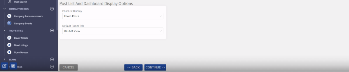 - Post List Display. Select the desired type of post list display for this room from the dropdown.