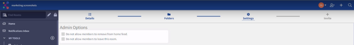 - Do not allow members to remove from home feed. By default, members of a room can remove this room's posts from their Home feed. For information on the Home feed see https://konverse.freshdesk.com/a/solutions/articles/66000491461. You can prevent this by checking this box. A room for critical company announcements is an example where you might want to check this box.