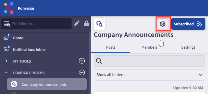 Folders are used to logically organize posts within a room. New folders can be added to existing rooms at any time.