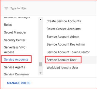 - In the Role drop-down select Service Accounts - Service Account User