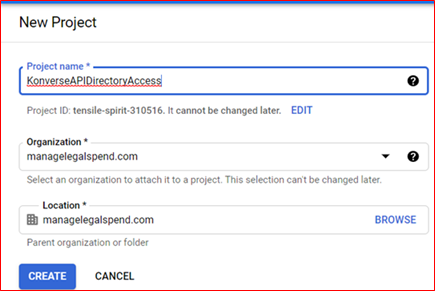 - Enter a name in the Project Name Field for example, KonverseAPIDirectoryAccess