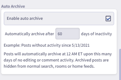 - Enter the amount of days of inactivity that need to pass before the post is archived.