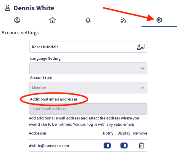 Users may want to add an additional email address to their profile, remove an email address or update the address that displays on their profile. Admins may make any of these updates, as well as a member to their own profile.