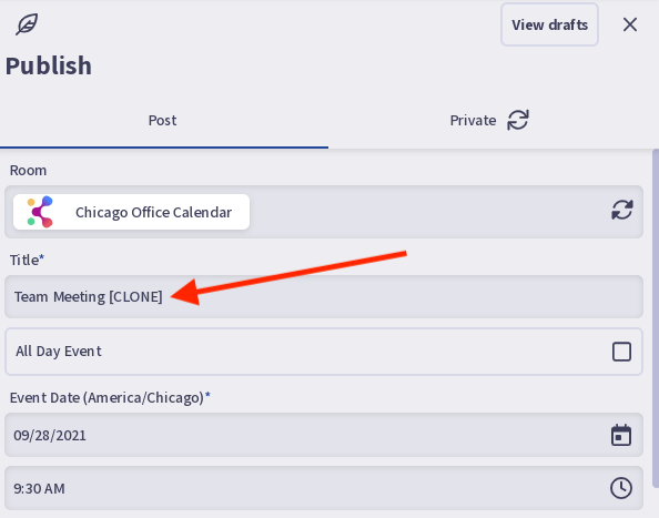 Make any necessary changes to this post, and click "publish". Now your new post is available to everyone in the room.