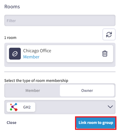 Groups can be mapped to rooms in one of two ways, by using member management or by accessing the room directly.