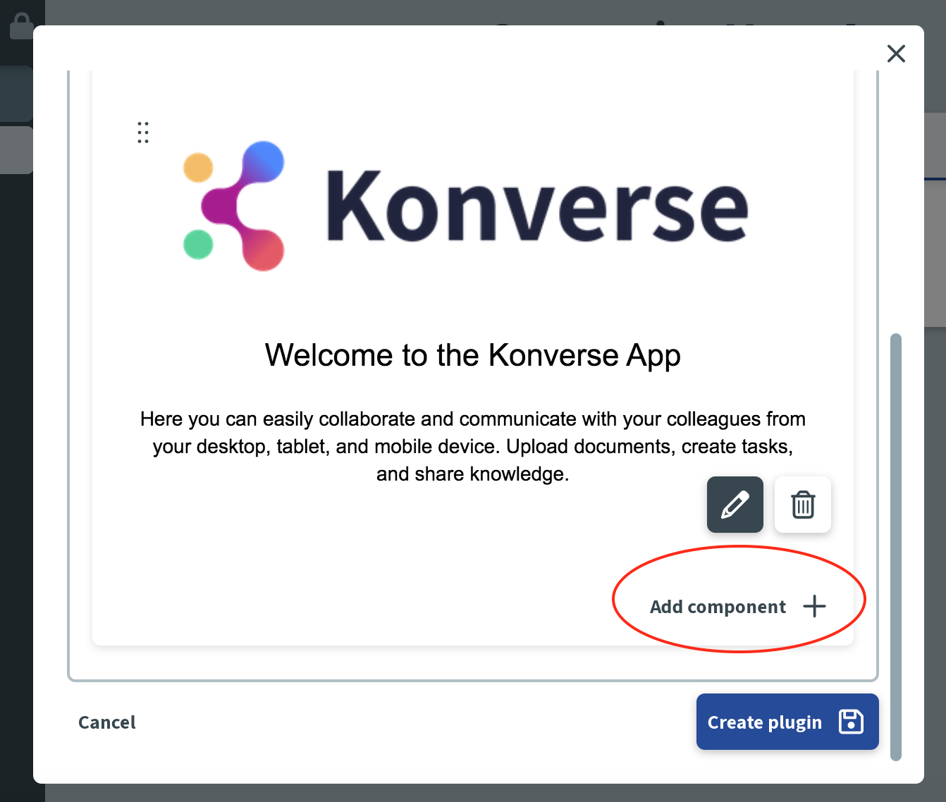 - From the pop up, click on "add component +" to make updates (see screenshot below)